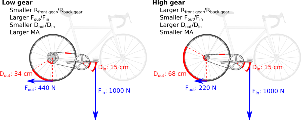 In the case of a bicycle, it’s the length of your crank arms, the radius of your rear wheel, and the ratio between your rear and front cogs that will determine how much of your pedal force can be outputted to drive you forward.