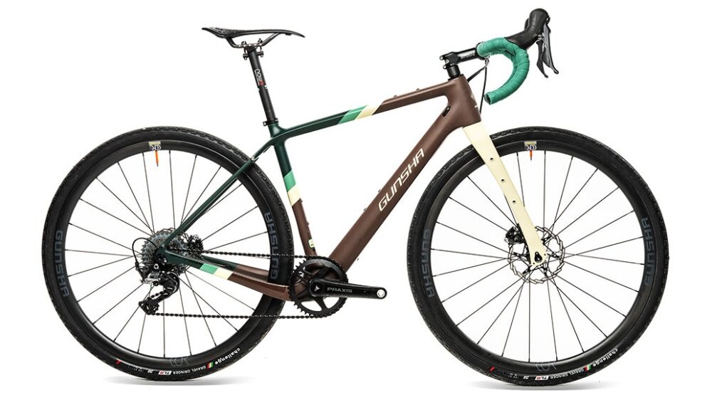 The frameset is heavier than average, so Gunsha has equipped this bike with the third lightest gravel wheels here and has made significant weight savings on components like the brake rotors, handlebar, stem, seatpost and saddle.